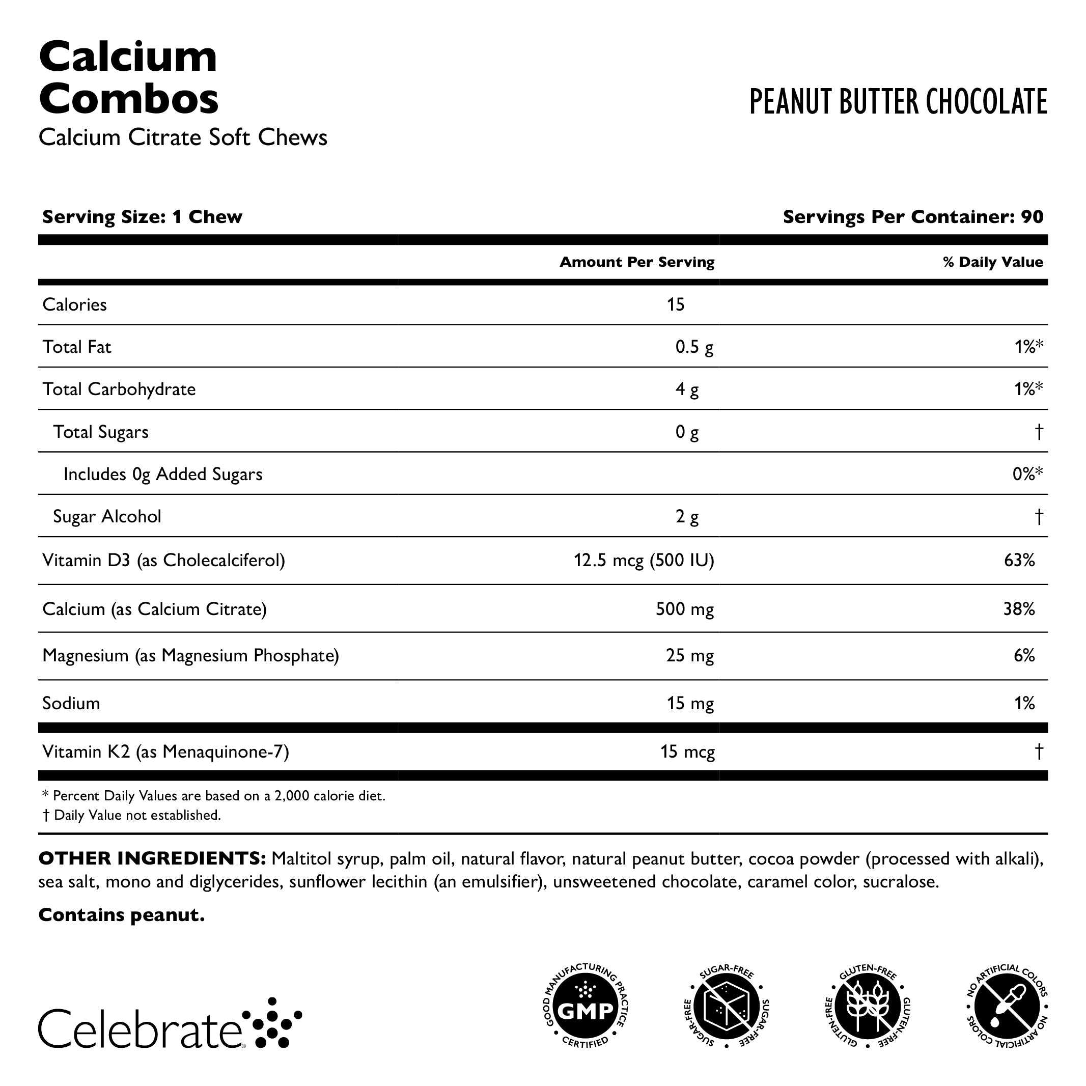Celebrate Calcium Combos kombinerer to lagdelte smaker i en unikt fantastisk myk tygge! Combos har en forbedret beinhelseformulering med magnesium og vitamin K2 (som MK-7). I tillegg, akkurat som våre andre Calcium Citrate Soft Chews, gjør Combos' myke tekstur dem enkle å tygge uten å feste seg til tennene. Alle våre myke tygger oppfyller ASMBS-standarder og gir kalsiumsitrat og vitamin D3. Du vil nyte hver bit av disse spennende smaks kombinasjonene!