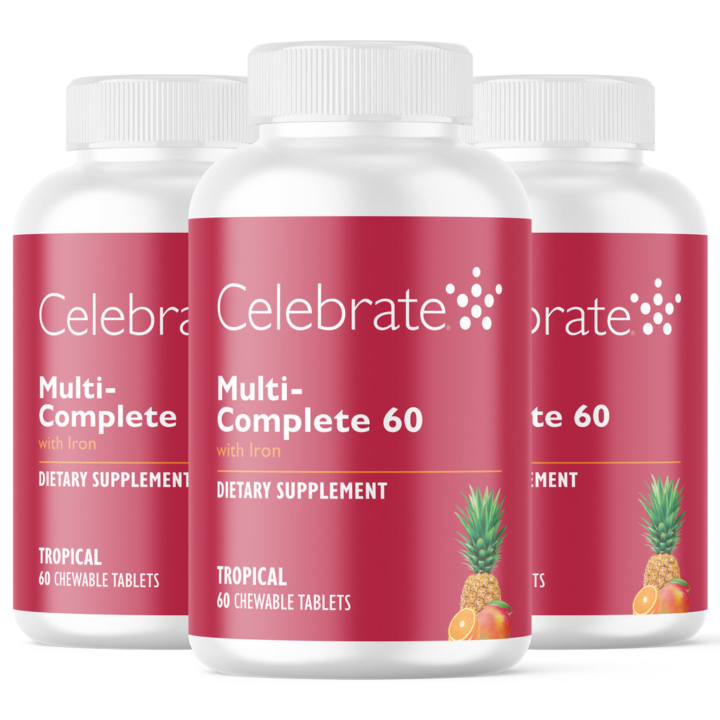 Celebrate Multi-Complete 60 inneholder alle vitaminer og mineraler i en to-per-dag, delt dose-alternativ, pasienter trenger bare å legge til kalsium. Dette multivitaminet har det høyeste jerninnholdet av alle bariatrisk multivitaminer på markedet, noe som gjør det perfekt for pasienter som har hatt en enkelt anastomose prosedyre og trenger mer jern. Dette bariatrisk multivitaminet oppfyller ASMBS-standardene for multivitamin og jern etter bariatrisk kirurgi og inkluderer også et høyere nivå av vitamin B-12 (1000 mcg). Denne integrerte formelen gir maksimal biotilgjengelighet ettersom vi nøye har valgt hver form for vitamin og mineral for å forbedre interaksjon og absorpsjon. MC-60 er tilgjengelig i tyggetabletter (Tropical smak) eller i en kapsel.