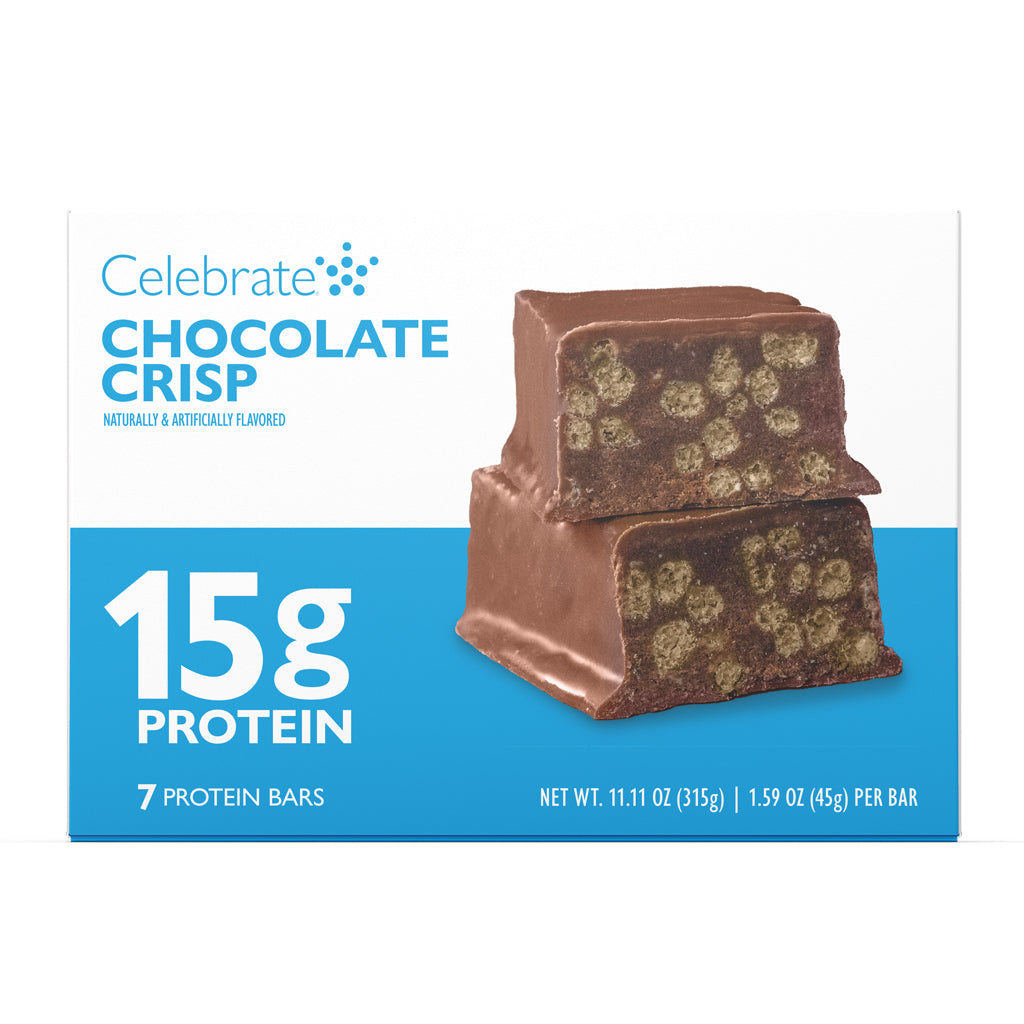 Celebrate's bariatric Protein Bars gir 15 g av høykvalitetsprotein. Hver bar inneholder også fiber, har et kaloriområde på 130-160, og et netto karbohydratområde mellom 14-17 g. Barene er tilgjengelige i 6 smaker (Salted Toffee Pretzel, Chocolate Crisp, Fluffy Lemon, Fluffy Nutter, Fluffy Choco Vanilla Crisp og Fluffy Berry).